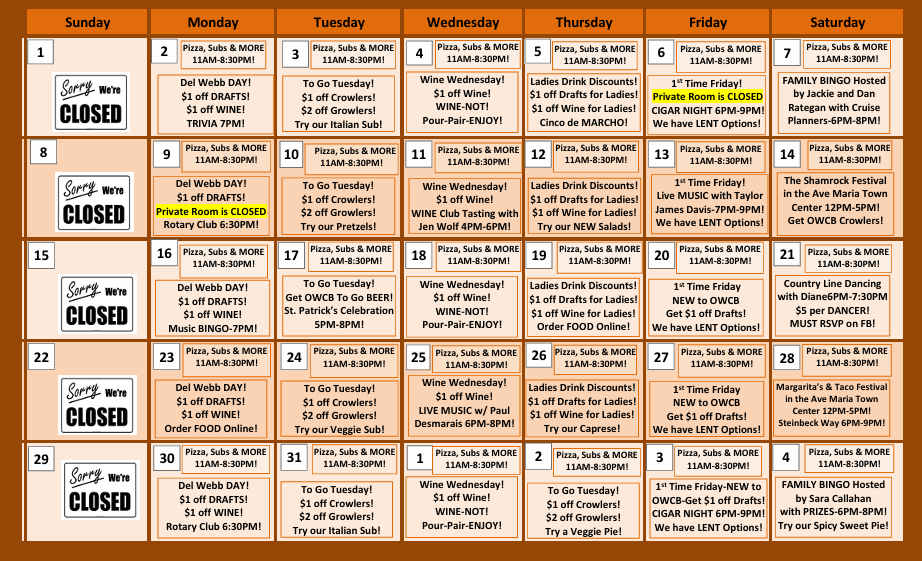 CALENDAR of EVENTS